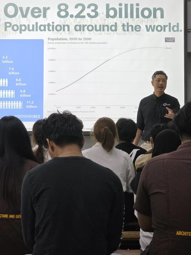 ตลอดระยะเวลา 13.30 – 15.00 น. ณ ห้อง Exhibition ชั้น 2 อาคารปฏิบัติการทางสถาปัตยกรรมและการออกแบบ บรรยากาศเต็มไปด้วยความสนใจจากนักศึกษาและผู้เข้าร่วมกิจกรรม ที่ได้เปิดมุมมองใหม่เกี่ยวกับบทบาทของสถาปนิกและนักออกแบบในยุคที่ “ความยั่งยืน” ไม่ใช่ทางเลือก แต่เป็นความรับผิดชอบร่วมกัน